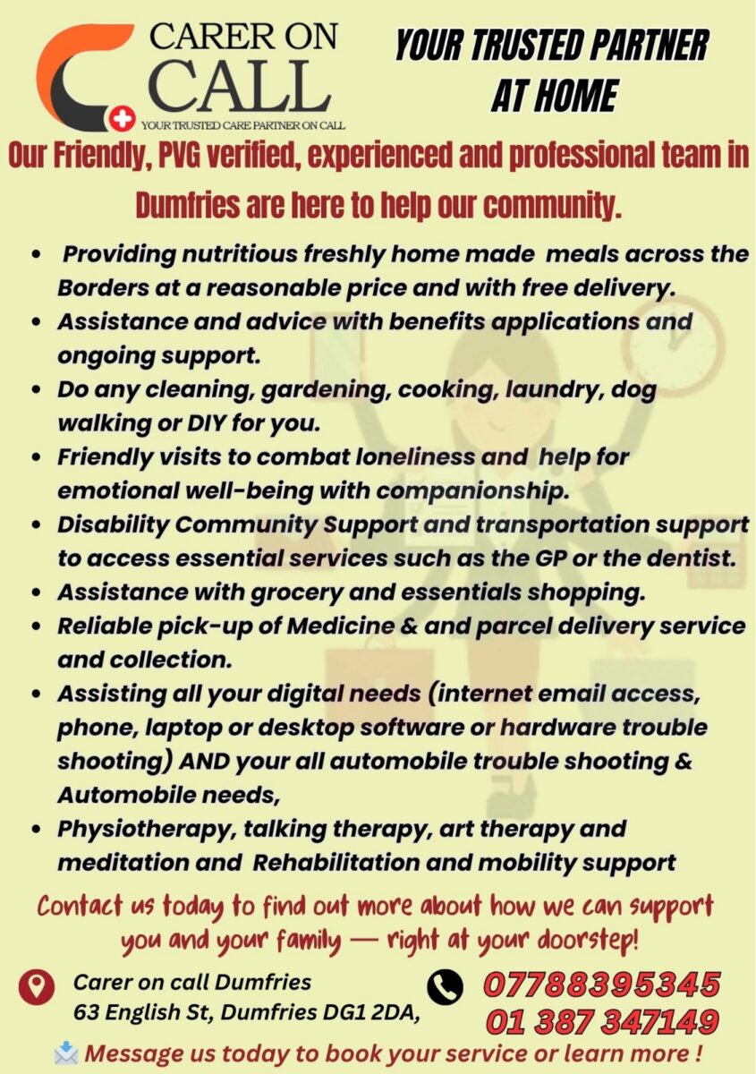 📍 Visit us: Carer on Call Dumfries, 63 English St, Dumfries DG1 2DA